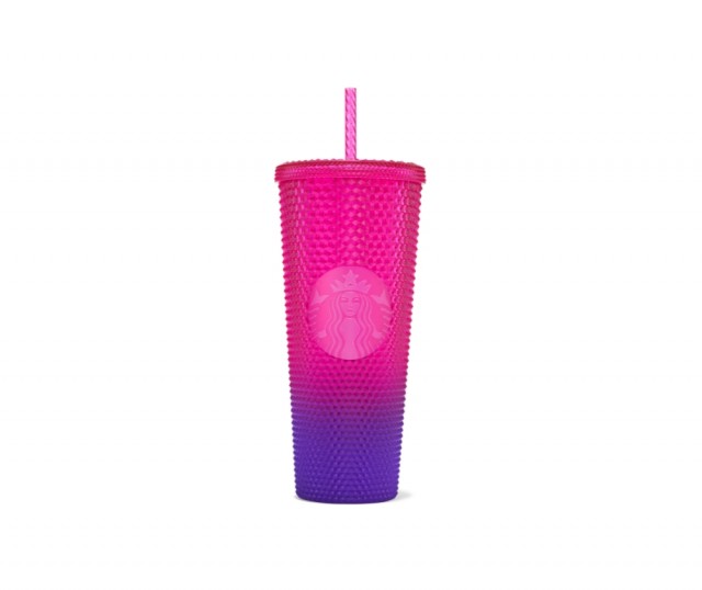 En av våra mest populära Bling-koppar i en somrig och begränsad design. En stor kopp för kalla drycker som har en lila/rosa färg.